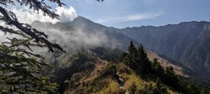As Denise and Richard set off to explore the Yushan – Dongfeng, I choose to head back to the hut. The descent is smooth and uneventful, with no remarkable incidents to mention except for a delightful encounter with a deer grazing just a meter from the trail—a serene moment amidst the mountain tranquility.