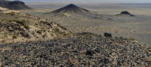 With the dawn breaking, we set off southwest to Bayandalaj village, journeying an additional fifty-plus kilometers. Eventually, we divert from the paved road, aiming directly for the summit. The path ahead isn’t entirely off-road, thanks to discernible tracks guiding our way. We navigate successfully for about twelve kilometers until a deep ravine bars our progress, signaling unmistakably that it’s time to leave the car behind and proceed on foot.