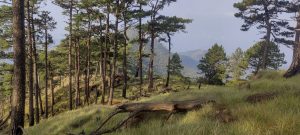 Anyway, soon after the briefing, we drive up another thousand meters and we are on the track. It starts on the road, passes some nice-looking farm fields, and soon we are in the forest. But not for long. After half an hour, we are out in the open. Nice views of dwarf bamboo grasslands. Very beautiful and interesting.