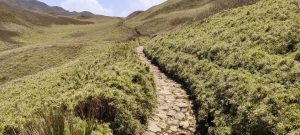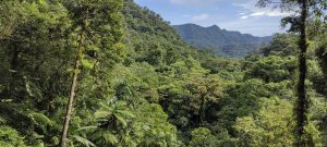 There are beautiful pine forests all around us, with nice views through the trees. There is a campsite before we enter the moss forest, the last bit of jungle is less than a kilometer and there is a relatively easy climb on the well-visible trail.