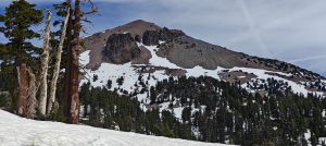 From the parking lot, it’s almost a flat four-kilometer walk to the Deadfall Lakes, then a bit steeper climb to the slopes. Few patches of snow but all avoidable. Snow-free switchbacks section, and I’m on the summit. The summit has an ascent log box and some construction ruins. Good views, with Mount Shasta being the most close and impressive. Lassen Peak is a bit more remote but also clearly visible.