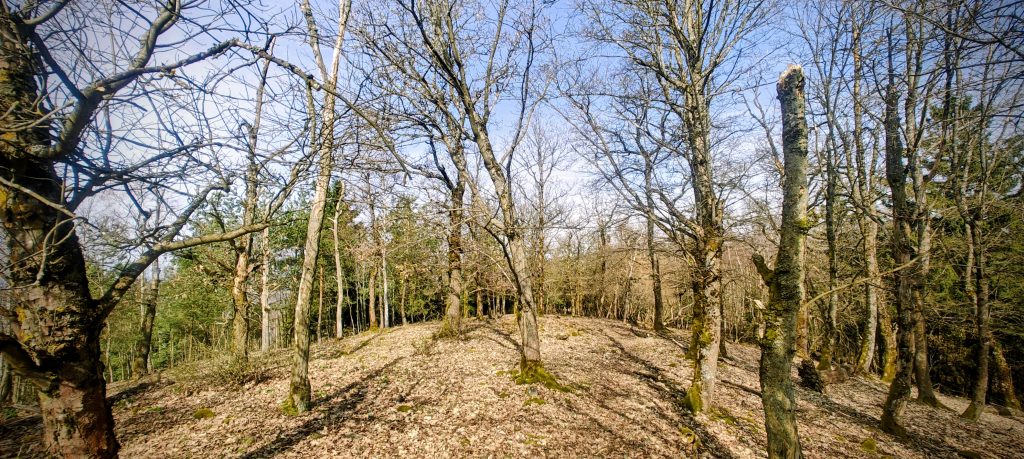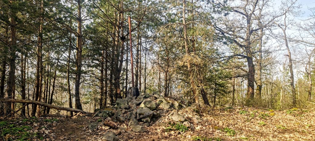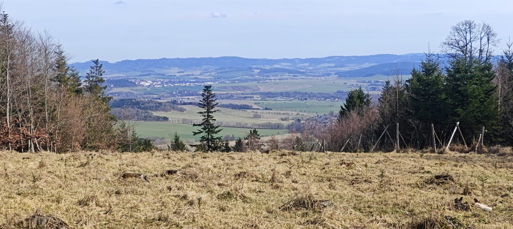 Because the summit itself is wooded, the better visual reward came on the route rather than at the very top. Openings in the forest and cut areas on the descent gave wider looks over the surrounding fields, villages, and low ridges of the region. None of it felt alpine, obviously, because humans remain committed to placing their mountains in inconveniently moderate landscapes. Still, the hill had enough local dominance to make the views feel earned. On a short peak like this, even one or two decent openings are enough to give the ascent a clear sense of place.